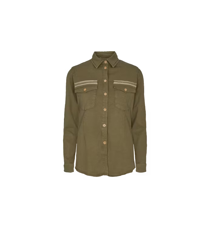 Sellby Trail Shirt fr Mos mosh 1 299 kr Produkten är tyvärr slut i lager. :( Produktbeskrivning Militärgrön skjortjacka med pynt på ficklock. Från Mos moshBomull.