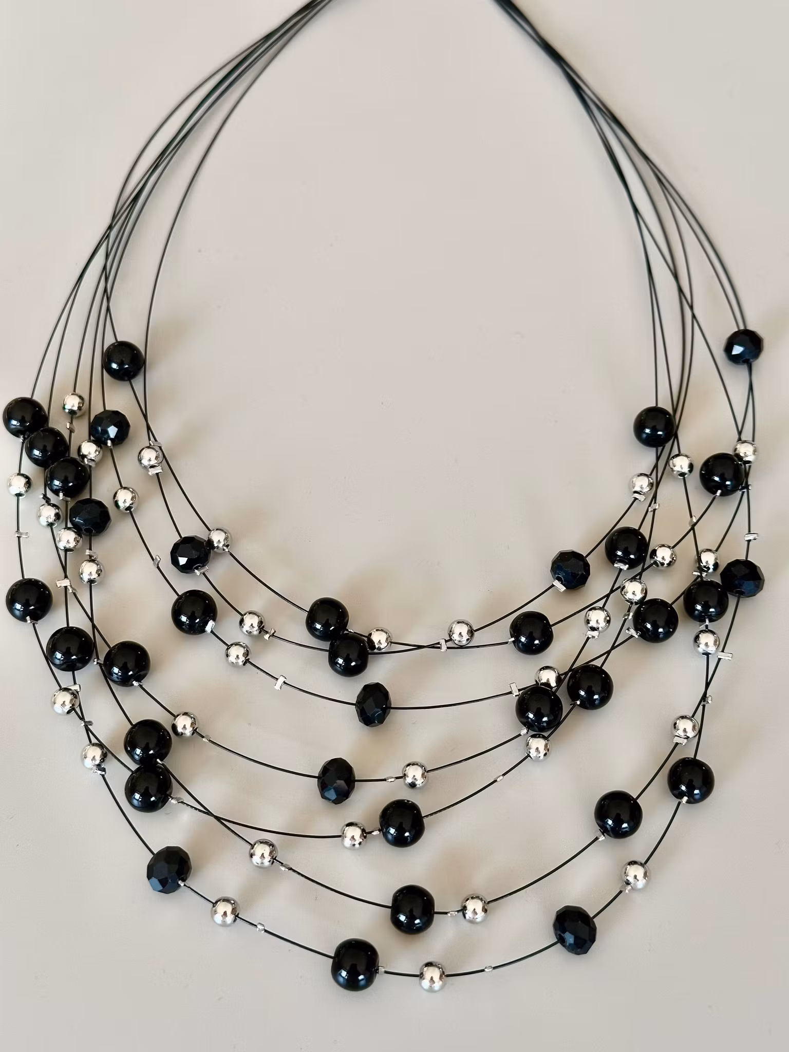 By Odahl halsband svart draperat 399 kr I lager. Lägg i korgen Produktbeskrivning Vackert halsband med svarta och silvriga pärlor. Kommer fint inslaget som julklapp.