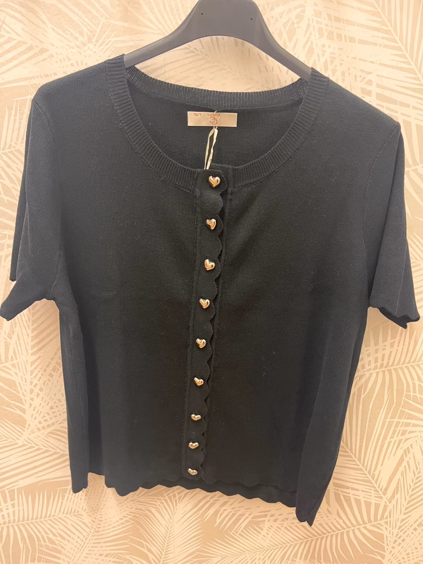 Caramelle kofta med hjärtknappar 399 kr färg gul offwhite rosa svart beige storlek s/m l/xl I lager. Lägg i korgen Produktbeskrivning Söt och nätt kofta med hjärtknappar. 72% viskos och 28% polyamid