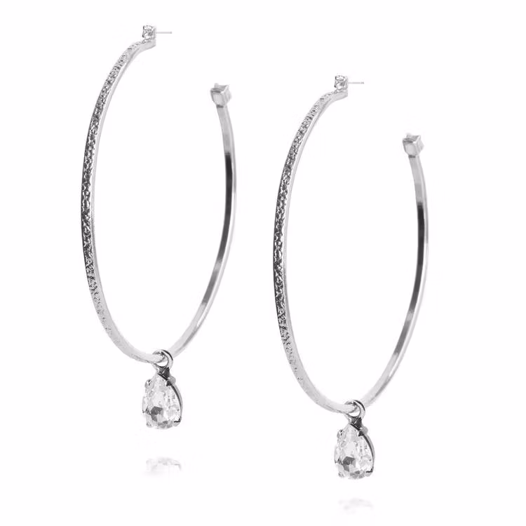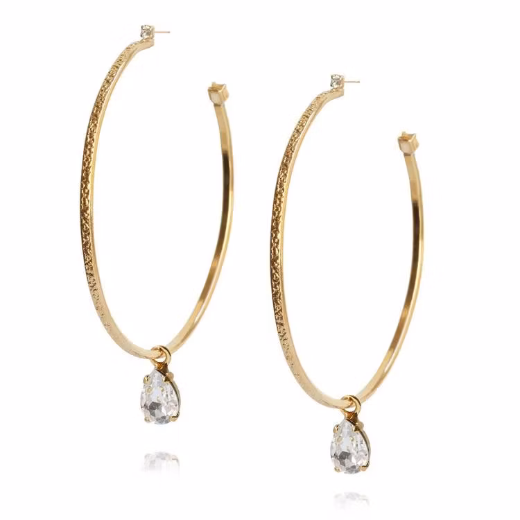 This timeless pair of Loop Earrings with small Swarovski drop will make a stylish addition to your outfit, whatever the occasion is. Shiny gold or rhodium plated brass will catch the light and give a luxurious feeling. The loops are a perfect compliment to the everyday look or evening dress.