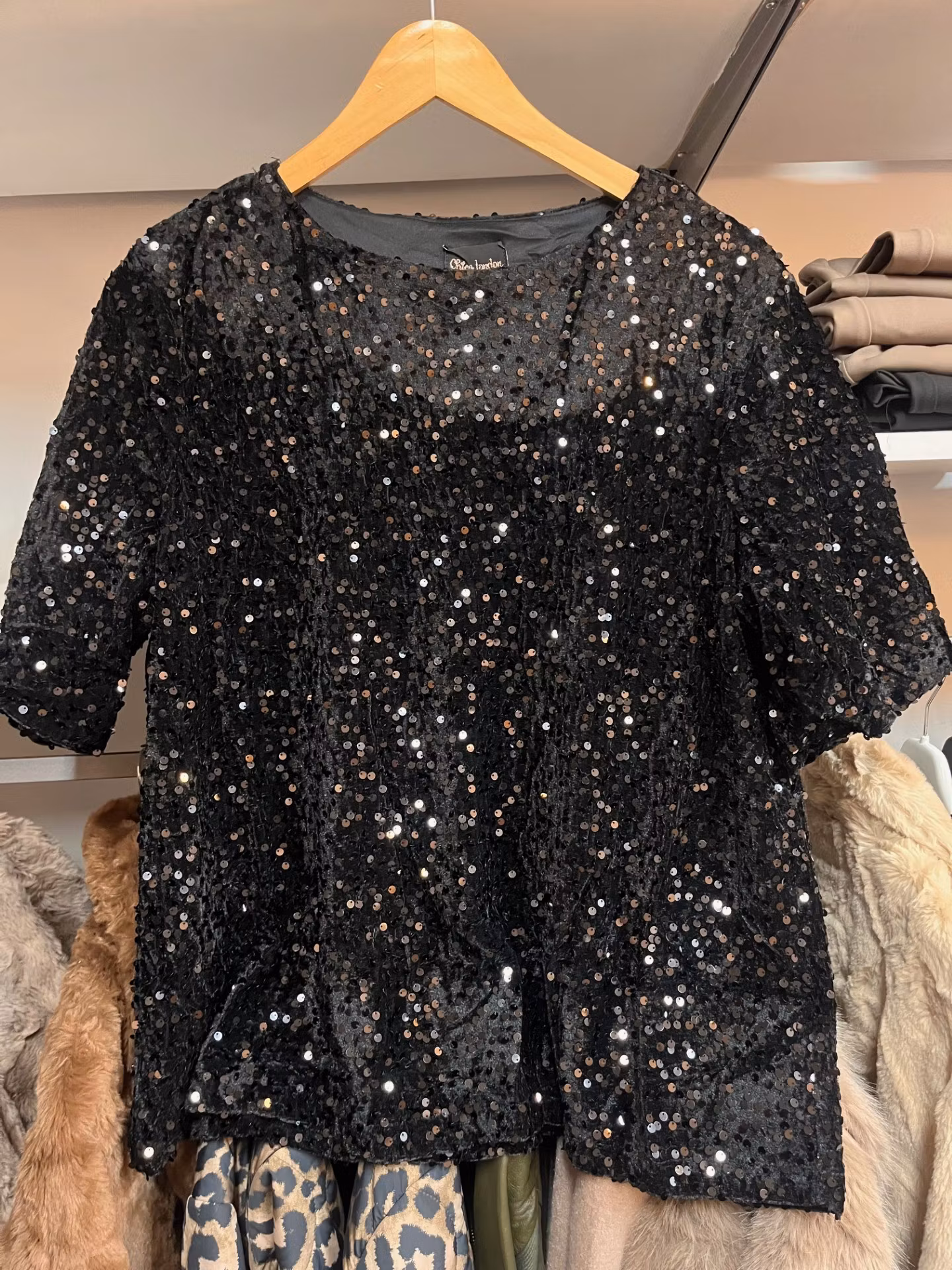 Chica London top med paljetter 499 kr storlek s/m l/xl I lager. Lägg i korgen Produktbeskrivning Vacker festlig top med paljetter i svart