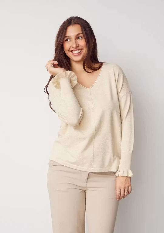 Isay Frigga smock tröja 699 kr färg cream pink blue storlek s m l xl I lager. Lägg i korgen Produktbeskrivning Stickat med feminina detaljerV-ringning med fint stickad kantLånga ärmar med smockade muddar och små volanger98% bomull, 2% elastan