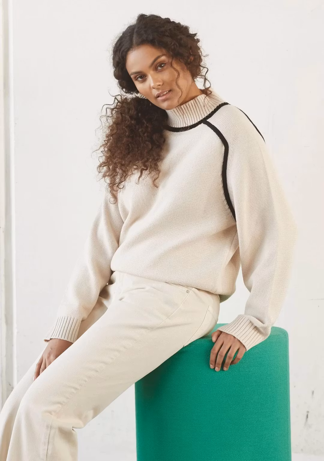 Isay Gwen tröja 799 kr storlek s m l xl I lager. Lägg i korgen Produktbeskrivning Stickad med lös passform och moderna kontrastdetaljerHög hals med stickad avslutningLånga raglanärmar med stickad kantKontrastband längs axel och halsringningBomullsblandning med akryl55% bomull, 45% akryl