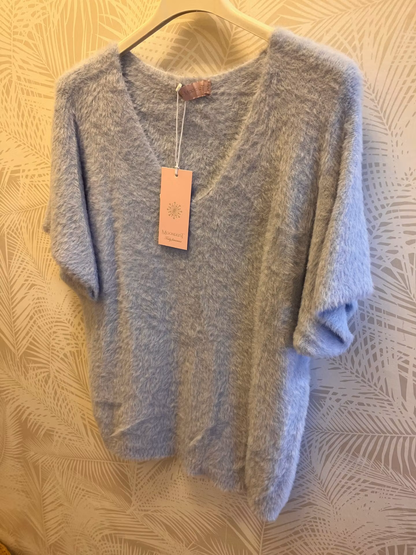Moondust blå tröja 499 kr storlek s/m l/xl I lager. Lägg i korgen Produktbeskrivning Lurvig tröja i 75% nylon, 15% ull, 10% elastan