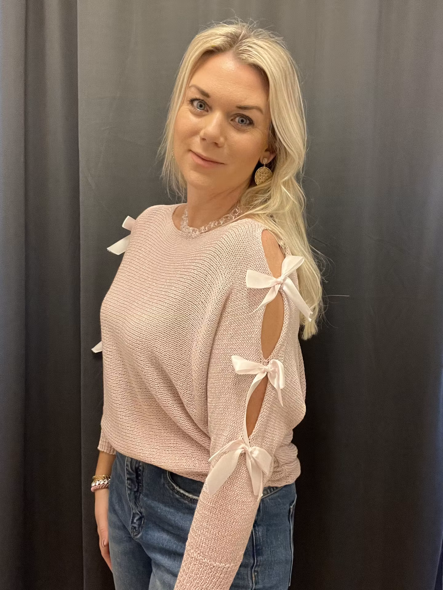Tröja med rosettärm rosa 499 kr Produkten är tyvärr slut i lager. :( Produktbeskrivning Tröja med fina rosetter på ärmen. One size.